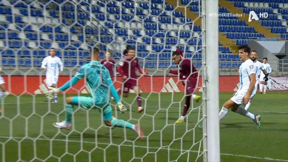Με μία τρομερή επέμβαση ο Οδυσσέας Βλαχοδήμος αντέδρασε υποδειγματικά στην πρώτη ευκαιρία των Λευκορώσων στο 21ο λεπτό
