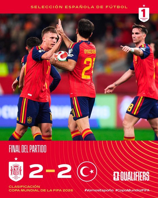 Ισπανία και Τουρκία αναδείχτηκαν ισόπαλες 2-2 και η πρώτη πήρε το εισιτήριο για το Μουντιάλ, ενώ η ομάδα του Μοντέλα πάει στα μπαράζ.