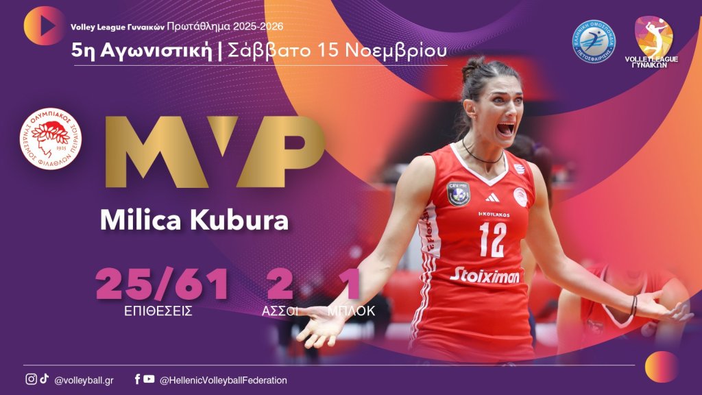 Η Μίλιτσα Κούμπουρα, μετά την ανάδειξή της σε MVP της 5ης αγωνιστικής, δήλωσε: «Είμαι πραγματικά πολύ χαρούμενη που βλέπω την ομάδα μου να βελτιώνεται από παιχνίδι σε παιχνίδι. Το πιο σημαντικό όμως είναι, ότι γινόμαστε όλο και πιο δεμένες και αρχίζουμε να λειτουργούμε σαν πραγματική ομάδα. Βρισκόμαστε ακόμη στην αρχή της σεζόν, για αυτό πρέπει να αφήσουμε πίσω μας αυτό το παιχνίδι και να κοιτάξουμε μπροστά, γιατί φέτος δεν υπάρχει κανένας εύκολος αγώνας. Την επόμενη εβδομάδα έχουμε και τα παιχνίδια του CEV Champions League, οπότε υπάρχει πολλή δουλειά να γίνει. Το πιο σημαντικό είναι, να διατηρήσουμε τη συγκέντρωσή μας».