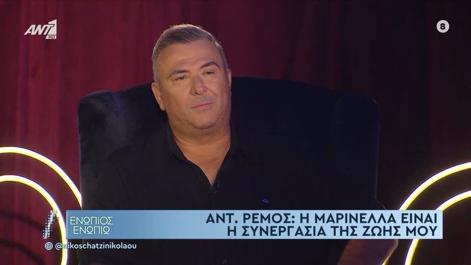 Ο Αντώνης Ρέμος βρέθηκε καλεσμένος στην εκπομπή του Νίκου Χατζηνικολάου «Ενώπιος Ενωπίω»το βράδυ της Πέμπτης και μεταξύ άλλων αναφέρθηκε στη Μαρινέλλα και στην κατάσταση της υγείας της, τονίζοντας πως περνάει τον Γολγοθά της.