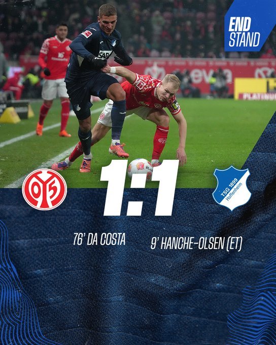Γκέλα μετά από 4 αγωνιστικές για τη Χόφενχαϊμ, που έμεινε στο 1-1 με τη Μάιντς και έχασε την ευκαιρία να σκαρφαλώσει στη 3η θέση.