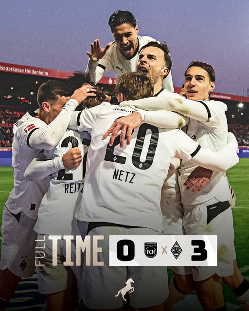Την τρίτη σερί της νίκη στο πρωτάθλημα πανηγύρισε η Γκλάντμπαχ, η οποία κέρδισε με 3-0 τη Χαϊντενχάιμ εκτός έδρας.