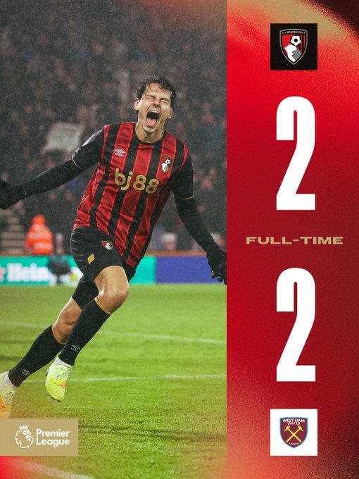 Ματσάρα στο «Vitality Stadium», εκεί όπου η Μπόρνμουθ και η Γουέστ Χαμ ήρθαν ισόπαλες 2-2.