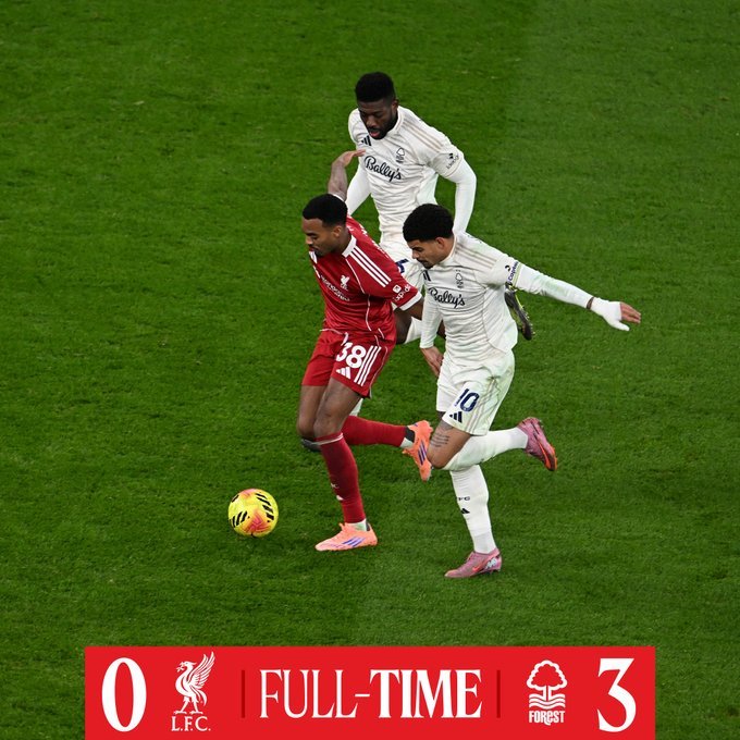 Σε άθλια κατάσταση η Λίβερπουλ, κατάφερε να χάσει μέσα στο «Άνφιλντ», από την εκ των ουραγών Νότιγχαμ Φόρεστ με 3-0.