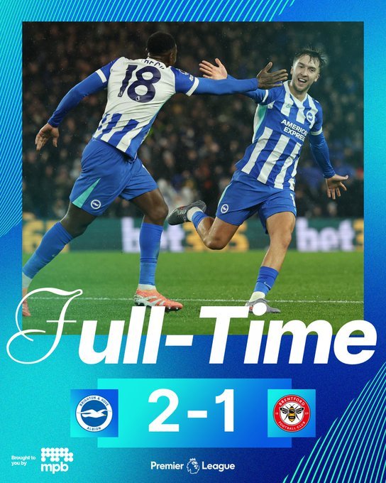 Τρίποντο με ανατροπή για την Μπράιτον, που επικράτησε της; Μπρέντφορντ με 2-1.