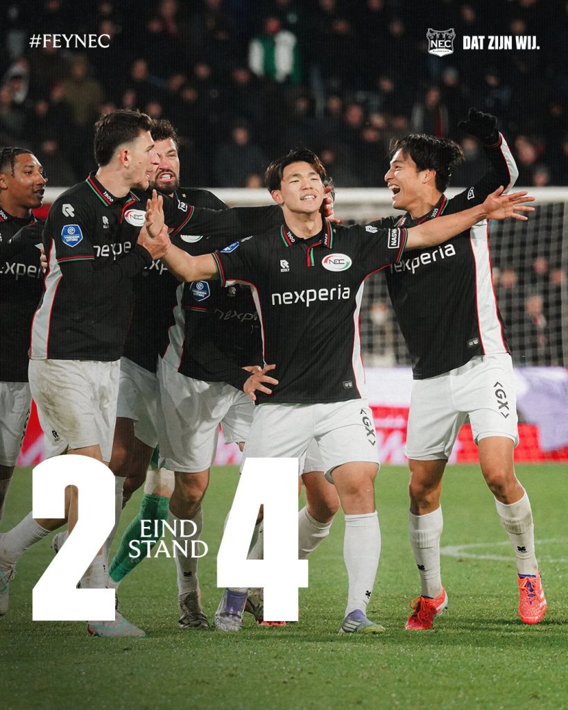 Αρχικά, οι φιλοξενούμενοι είδαν το VAR να τους στερεί τη χαρά, στο 61', αφού ο Πρόπερ ήταν οφσάιντ και το γκολ δεν μέτρησε. Όμως, οκτώ λεπτά μετά, ο Λέμπρετον, με κεφαλιά, έκανε το 2-2, για να ακολουθήσουν δυο γκολ, στο 84' και στο 90'+1', από τον Σιογκάι, για το θριαμβευτικό 2-4, που ανεβάζει τη Ναϊμέχεν στη τέταρτη θέση.