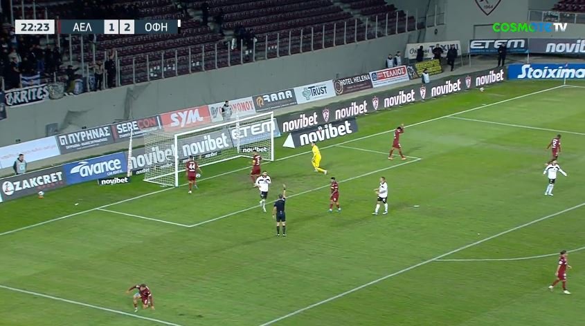 Στο 23ο λεπτό ο ΟΦΗ σκόραρε ξανά με τον Λεβάν Σενγκέλια, αλλά αυτή τη φορά το γκολ ακυρώθηκε για οφσάινt.