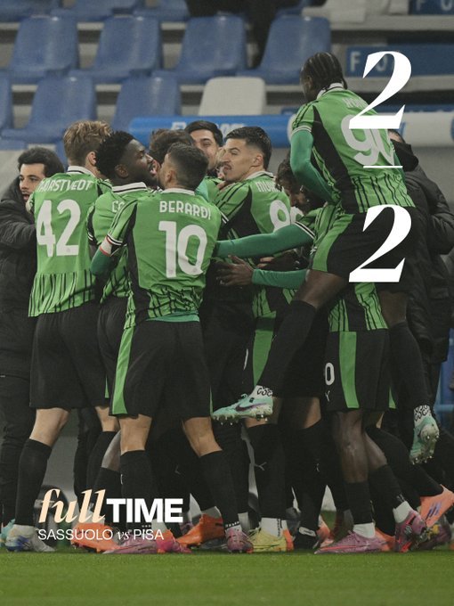 Η Σασουόλο ξενέρωσε την Πίζα στο φινάλε, καθώς της πήρε ισοπαλία 2-2 με γκολ στο 90+5'.