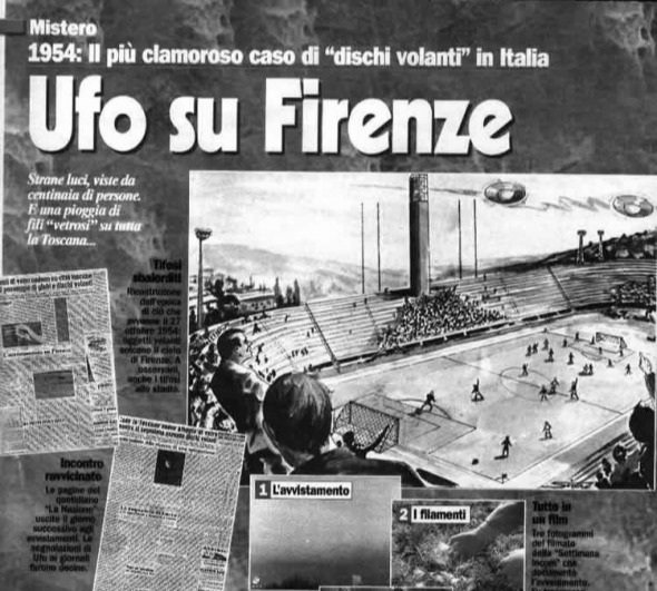 27 Οκτωβρίου 1954, 15:27 – Το φιλικό παιχνίδι της Φιορεντίνα με την Πιστοϊέζε στο στάδιο «Καμουνάλε» (πλέον Αρτέμιο Φράνκι) βρίσκεται σε εξέλιξη όταν η προσοχή των περίπου 10.000 θεατών στρέφεται από το χορτάρι στον ουρανό.