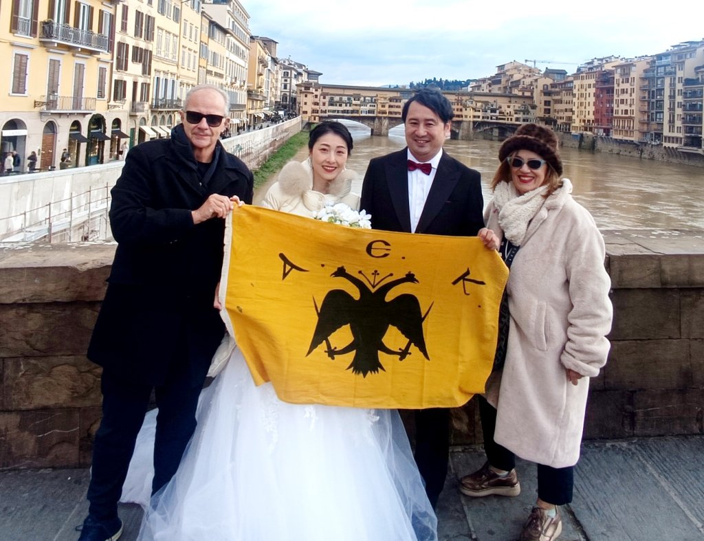 Στη γέφυρα, μάλιστα, έβγαλαν μία φωτογραφία με ένα νεόνυμφο ζευγάρι, ποζάροντας κρατώντας τη σημαία της ΑΕΚ.
