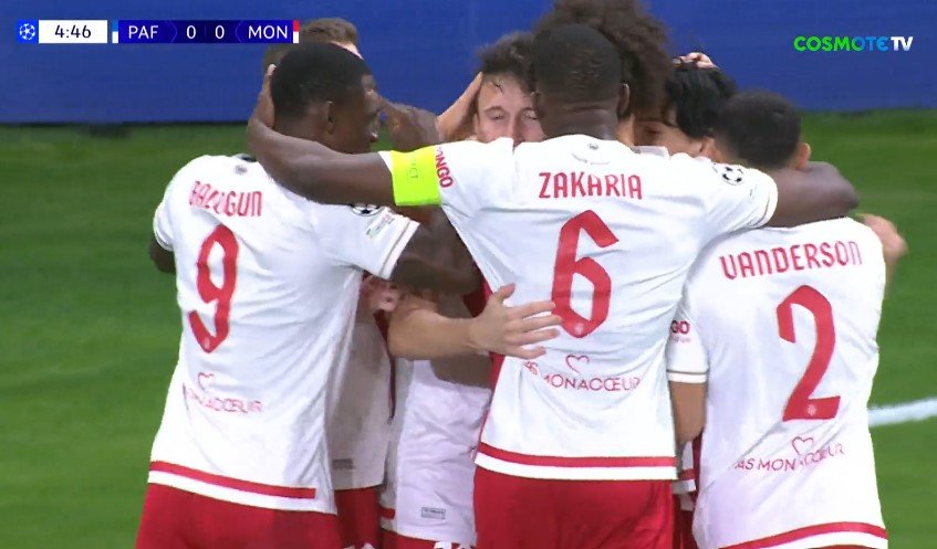 ΠΑΦΟΣ – ΜΟΝΑΚΟ: Το πρώτο γκολ της βραδιάς έρχεται για τη Μονακό με το Μιναμίνο στο 5ο λεπτό. Ισοφαρίζει με Νταβίντ Λουίζ η Πάφος, όμως η Μονακό ανακτά το προβάδισμα με τον Μπαλόγκουν στο 26'
