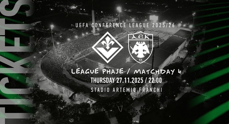 Η ΠΑΕ ΑΕΚ θα ήθελε να ενημερώσει τους φιλάθλους της ομάδας μας για τη διαδικασία εισόδου στο Stadio Artemio Franchi, για τον αγώνα με την ACF Fiorentina, που θα διεξαχθεί αύριο Πέμπτη 27 Νοεμβρίου στις 21:00 (22:00 ώρα Ελλάδας).