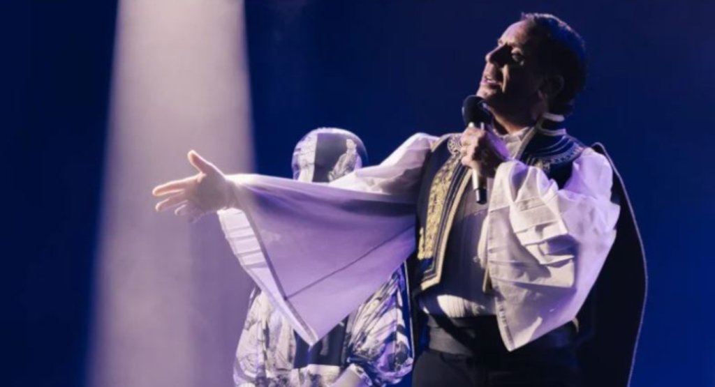 Ο τραγουδιστής παρουσίασε μια ξεχωριστή version της «Θαλασσογραφίας», με το κοινό να παρακολουθεί μια pop–fashion στιγμή με έντονο ελληνικό χρώμα.