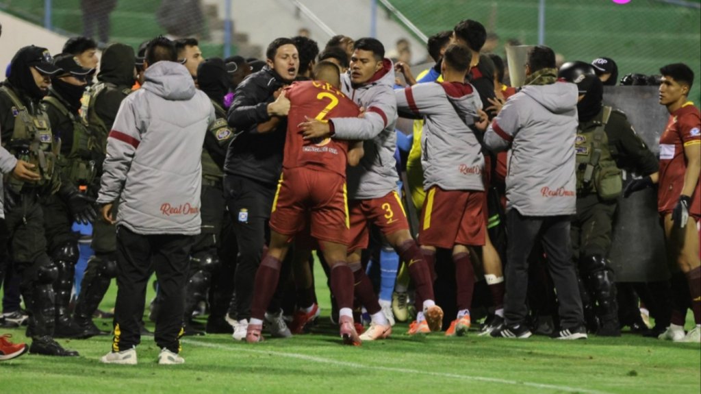 Η ένταση ξεκίνησε όταν ο Σεμπαστιάν Σεμπάγιος της Τοτόρα Ρεάλ Ορούρο, που συγκρατούνταν από παίκτες της Μπλούμινγκ, ξέφυγε και άρχισε να σπρώχνει αντιπάλους. Ο Χούλιο Βίλα ακολούθησε με γροθιές, πυροδοτώντας γενικευμένη σύρραξη. Την ίδια στιγμή, ο προπονητής Μαρσέλο Ρομπλέδο συγκρούστηκε με μέλος του τεχνικού τιμ της Μπλούμινγκ και έπεσε στο έδαφος.