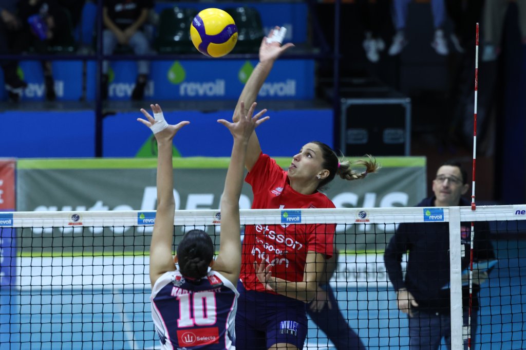Στο πρώτο σετ ο Πανιώνιος με όπλο το σερβίς και το μπλοκ προηγήθηκε με 1-9, για να φτάσει η διαφορά σε διψήφιο αριθμό με επίθεση της Ραχίμοβα (8-18). Η Αζέρα διαγώνια ήταν αυτή που διαμόρφωσε και το 14-25 για το 0-1 σετ του Πανιωνίου.