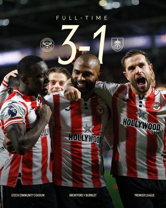Η Μπρέντφορντ επικράτησε της Μπέρνλι με 3-1 και βρέθηκε στην επτάδα, ενώ η αντίπαλός της παρέμεινε στην προτελευταία θέση.