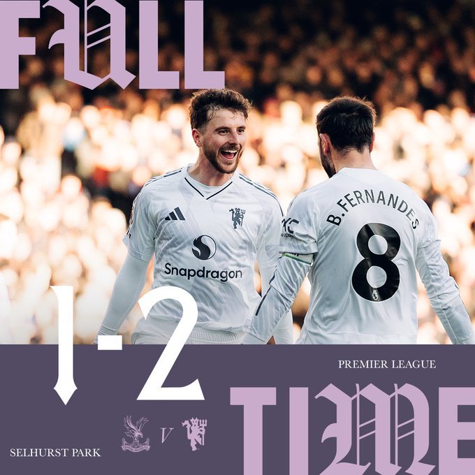 Για πρώτη φορά μετά τον Ιούλιο του 2020, η Μάντσεστερ Γιουνάιτεντ νίκησε στο Selhurst Park. Η ομάδα του Αμορίμ βρέθηκε πίσω στο σκορ, αλλά, μέσα σε εννέα λεπτά στην επανάληψη, πέτυχε την ανατροπή, νίκησε 2-1 την Κρίσταλ Πάλας και σκαρφάλωσε στην έκτη θέση.