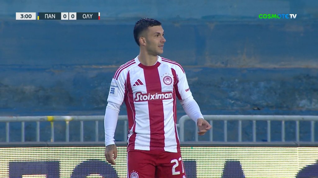 Σέντρα του Στρεφέτσα από τα αριστερά, δεν μπόρεσε να πάρει την κεφαλιά ο Γιάρεμτσουκ.