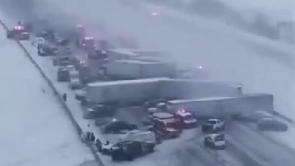 A major pileup occurred on a highway in Indiana after heavy snowfall. Visibility dropped almost instantly, causing vehicles to slam into one another.
