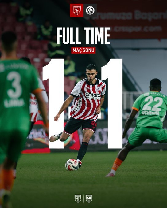 Έμφραγμα στο φινάλε για τη Σαμσουνσπόρ, η οποία κόλλησε στο 1-1 με την Αλάνιασπορ.