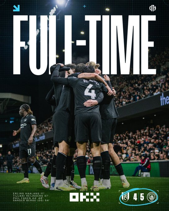 Σταθερά μέσα στη μάχη του τίτλου η Σίτι, η οποία κέρδισε με 5-4 μέσα στην έδρα της Φούλαμ και βρέθηκε στο -2 από την Άρσεναλ, αλλά με ματς παραπάνω.