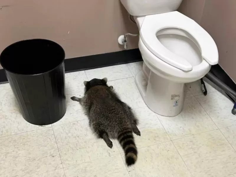 Hanover County Animal Protection says the raccoon "ransacked" the store before passing out next to the toilet.