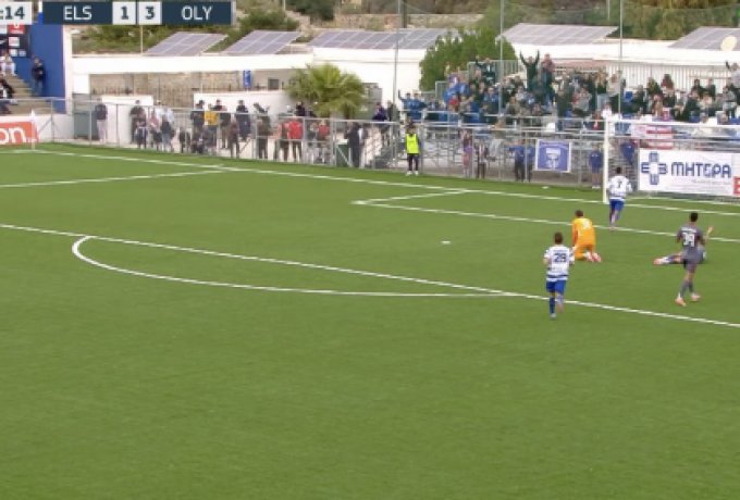 Στο 78ο λεπτό, η Ελλάς Σύρου σκόραρε για δεύτερη φορά κόντρα στον Ολυμπιακό. Από μπαλιά στην πλάτη της άμυνας, ο Βερνάρδος πρόλαβε την έξοδο του Μπότη και με υπέροχη λόμπα έστειλε την μπάλα στα δίχτυα για το 2-3.