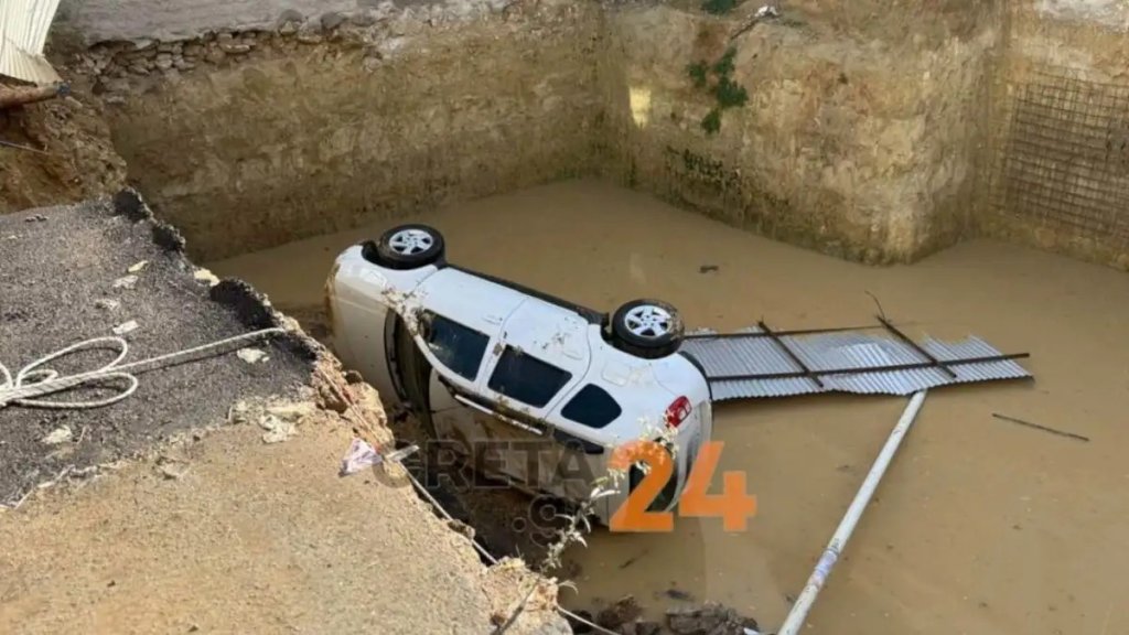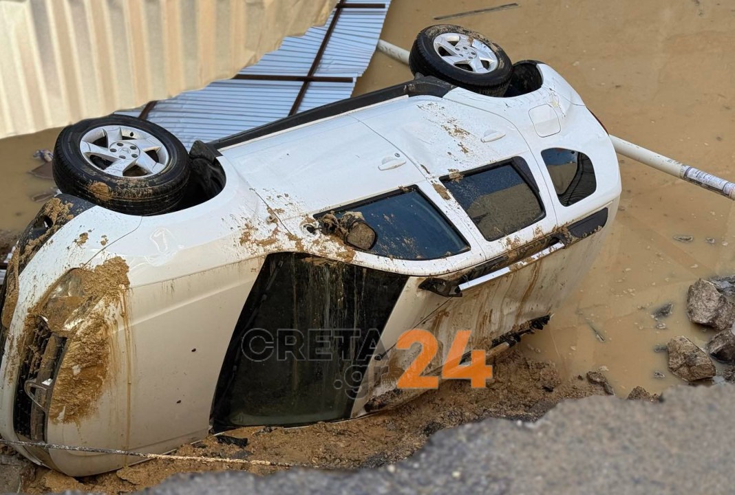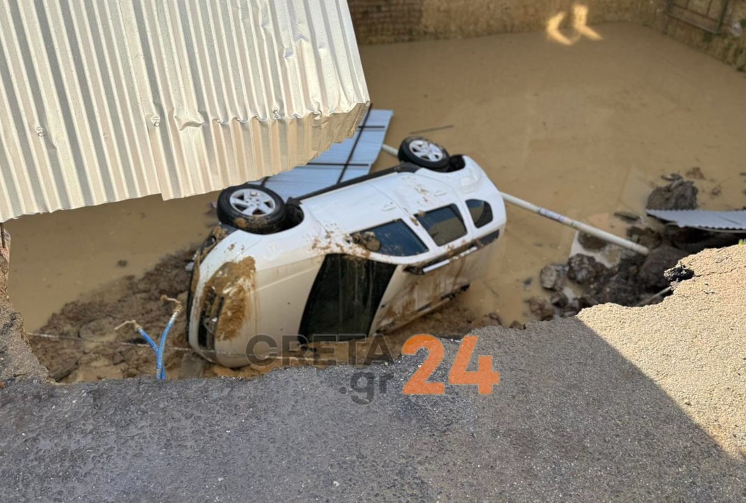 Το πρωί της Πέμπτης, οδηγός αυτοκινήτου, στο Ηράκλειο Κρήτης, ενώ πάρκαρε κανονικά το όχημά του, ο δρόμος από κάτω του υποχώρησε με αποτέλεσμα το αυτοκίνηο να πέσει σε οικόπεδο όπου γίνονταν εργασίες.