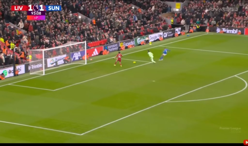 Ο γκολκίπερ της Σάντερλαντ έκανε το βολέ, η άμυνα της Λίβερπουλ είχε μείνει ψηλά, ο Κιέζα, ως τελευταίος παίκτης, κυνήγησε τον αντίπαλό του και έτρεξε προς την κενή εστία, βλέποντας τον Άλισον να έχει βγει. Ο παίκτης της Σάντερλαντ πλάσαρε και πριν η μπάλα περάσει τη γραμμή, ο Κιέζα έδιωξε, κρατώντας το 1-1.