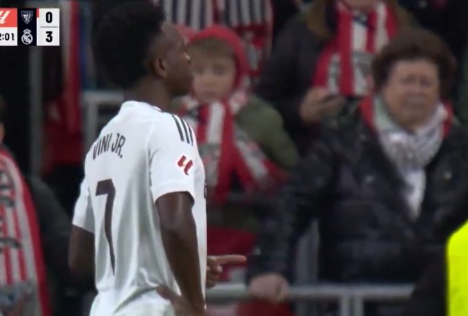 Η Ρεάλ είχε ένα σχετικά εύκολο βράδυ, με τον Κιλιάν Μπαπέ να οδηγεί την ομάδα σε ακόμη ένα σημαντικό «διπλό», το οποίο τη διατήρησε κοντά στη Μπαρτσελόνα μετά το πέρας 15 αγωνιστικών στη La Liga. Παρ’ όλα αυτά, το παιχνίδι στιγματίστηκε από δύο περιστατικά: τον σοβαρό τραυματισμό του Τρεντ Αλεξάντερ-Άρνολντ και τη νέα ατυχέστατη αντίδραση του Βινίσιους. Ο 25χρονος εξτρέμ, που δεν πραγματοποίησε ιδιαίτερα καλή εμφάνιση, βρέθηκε στο στόχαστρο του κόσμου των Βάσκων. Με το σκορ ήδη στο 0-3, οι αποδοκιμασίες από την εξέδρα πλήθαιναν, και ο Βίνι δεν κατάφερε να συγκρατήσει τα νεύρα του. Πλησίασε το πέταλο και ύψωσε τρία δάχτυλα — ένα για κάθε γκολ της Ρεάλ — κίνηση που προκάλεσε εκρηκτικές αντιδράσεις τόσο στο γήπεδο όσο και στα social media. Το περιστατικό έρχεται να προστεθεί σε μια σειρά στιγμών έντασης που συνοδεύουν τον Βραζιλιάνο εκτός έδρας, εντείνοντας εκ νέου τη συζήτηση γύρω από τη συμπεριφορά του.