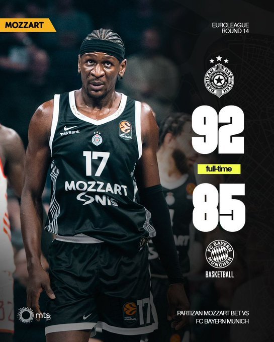 Σε μια αναμέτρηση που οι φίλαθλοι της Παρτιζάν εκδήλωσαν την στήριξή τους στον Ζέλικο Ομπράντοβιτς, οι «ασπρόμαυροι» του Βελιγραδίου επικράτησαν της Μπάγερν Μονάχου με 92-85