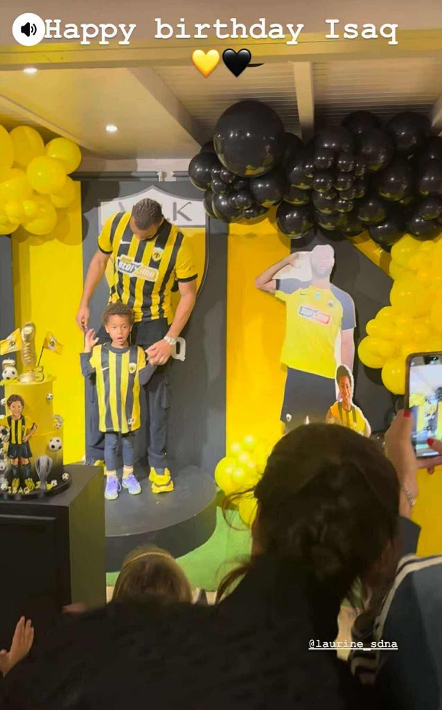 Ένα φουλ κιτρινόμαυρο party γενεθλίων διοργάνωσε ο Άρολντ Μουκουντί για τον γιο του Ίσαακ που είχε γενέθλια. Όπως θα δείτε όλα ήταν... ΑΕΚ από τις τούρτες και τα σκηνικά μέχρι και τους... καλεσμένους. Ακόμα και οι συμπαίκτες του Μουκουντί (Κοϊτά, Μάνταλος, Κουτέσα, Πινέδα φαίνονται στα story) που έδωσαν το «παρών», φορούσαν εμφανίσεις της ομάδας!