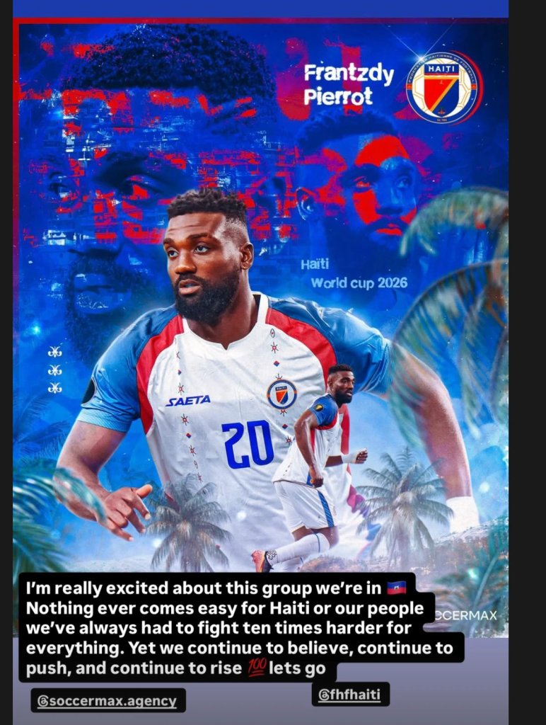«Είμαι πολύ ενθουσιασμένος με τον όμιλο στον οποίο βρισκόμαστε. Τίποτα δεν έρχεται εύκολα για την Αϊτή ή τον λαό μας. Πάντα έπρεπε να παλέψουμε δέκα φορές περισσότερο για τα πάντα. Παρ’ όλα αυτά συνεχίζουμε να πιστεύουμε, να προχωράμε μπροστά και να ανεβαίνουμε. Πάμε!».