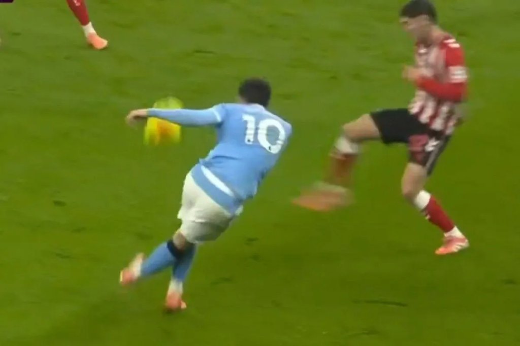 Συγκεκριμένα, ο μεσοεπιθετικός της ομάδας του Πεπ Γκουαρδιόλα, αφού πρώτα έριξε τον αντίπαλό του στο έδαφος με μία προσποίηση, έκανε ασίστ-ραμπόνα προς τον συμπαίκτη του, ο οποίος με το κεφάλι έγραψε το 3-0 για τους γηπεδούχους στο 65ο λεπτό.