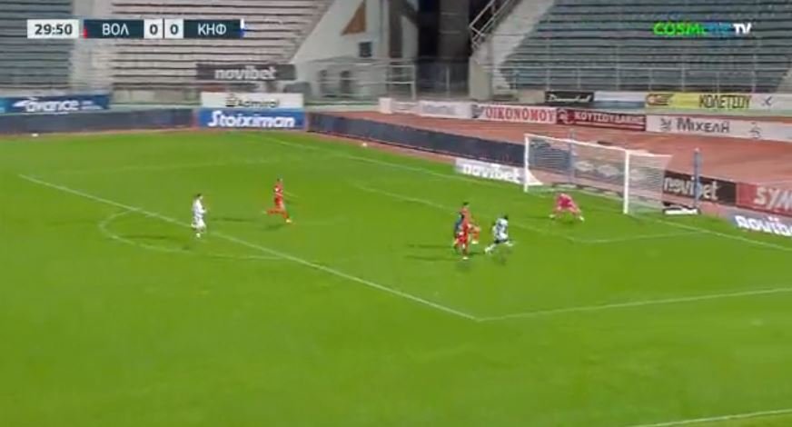 Στο 30’ ο Έλληνας διεθνής έβαλε όμορφα τον Φορτούνα στην πλάτη αλλά πλάσαρε άστοχα από κοντά.