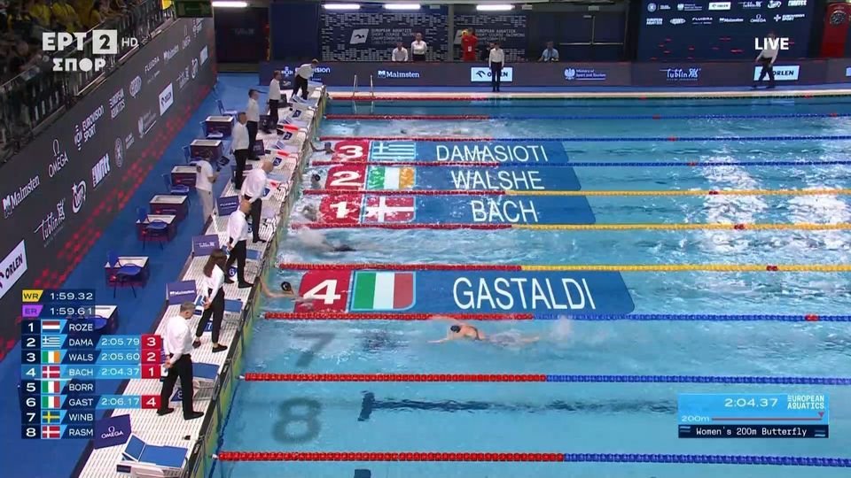 Η Γεωργία Δαμασιώτη πραγματοποίησε την καλύτερη κούρσα της ζωής της στα 200μ πεταλούδα, την έκανε στα ημιτελικά του ευρωπαϊκού πρωταθλήματος στο Λούμπλιν της Πολωνίας, σημείωσε μεγάλο πανελλήνιο ρεκόρ με 2:05.79 και θα την θαυμάσουμε και πάλι αύριο (Κυριακή 7/12) στις 20:50 στον μεγάλο τελικό του αγωνίσματος. Στην αυλαία του πρωταθλήματος όπου θα έχουμε και την παρουσία της Άρτεμις Βασιλάκη στον τελικό των 1500μ ελεύθερο στις 21:14.