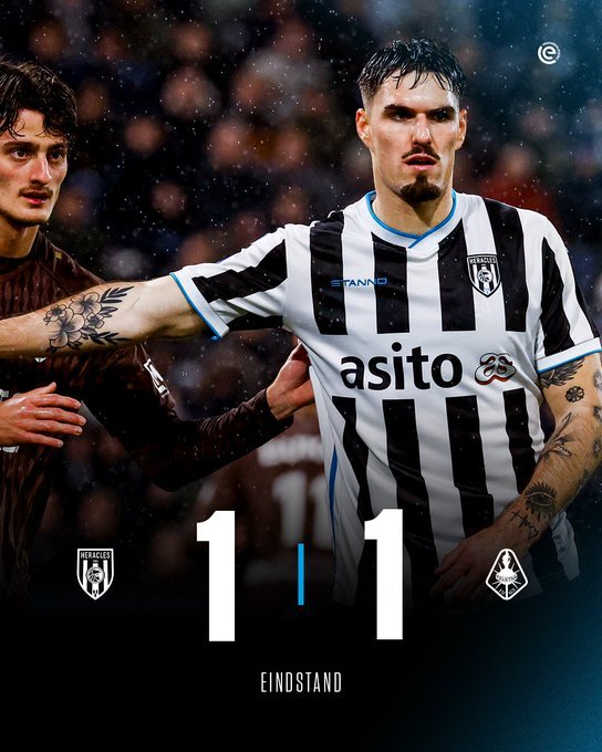 Έσωσε βαθμό στο τέλος η Χέρακλες στο ντέρμπι της ουράς κόντρα στην Τέλσταρ και έμεινε από πάνω της στη βαθμολογία. Το σκορ άνοιξε ο Ζόνεφελντ στο 67ο λεπτό με τον Μέσικ να ισοφαρίζει στις καθυστερήσεις στο τελικό 1-1.