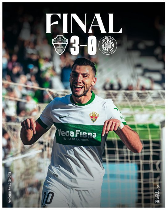 Το πρώτο της τρίποντο μετά από 2,5 μήνες πανηγύρισε η Έλτσε, μιας και κέρδισε άνετα με 3-0 τη Τζιρόνα και ανέβηκε στους 19 βαθμούς. Παρέμειναν στη 18η θέση οι Καταλανοί.
