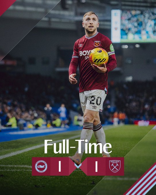 Έμφραγμα στο 90’ για τη Γουέστ Χαμ, που κόλλησε στο 1-1 με την Μπράιτον και παρέμεινε στη ζώνη του υποβιβάσιμου.