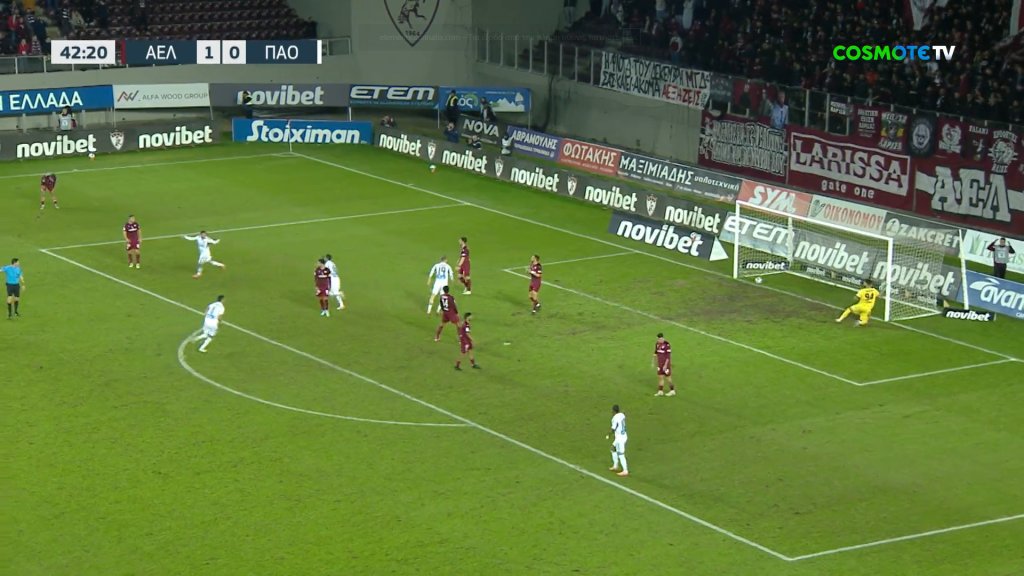 Σέντρα του Μλαντένοβιτς, ωραία κεφαλιά του Καλάμπρια για το 1-1 στο 43ο λεπτό