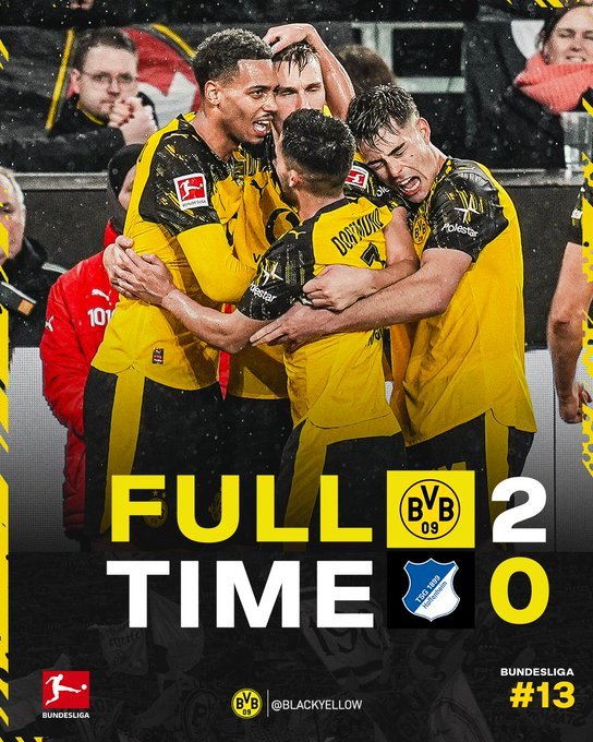Χωρίς να εντυπωσιάσει αλλά έχοντας ουσία στο παιχνίδι της, η Μπορούσια Ντόρτμουντ επιβλήθηκε με 2-0 της Χοφενχάιμ. Έτσι, τερμάτισε το σερί των φιλοξενούμενων, που ήταν 8 παιχνίδια αήττητοι εκτός έδρας.