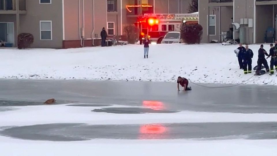 Ο πάγος έσπασε και ξαφνικά ένας σκυλάκος στο Κρόφορντσβιλ της Ιντιάνα, ΗΠΑ, έπεσε στα παγωμένα νερά λίμνης στις 3 Δεκεμβρίου. Ευτυχώς, διασώστες έσπευσαν και κατάφεραν να βγάλουν σώο τον σκύλο!