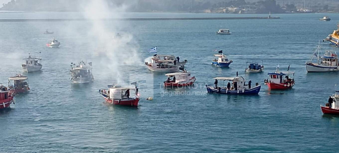 Παράλληλα αποκλεισμό στο λιμάνι επιχειρούν και οι αλιείς του Βόλου από τη θάλασσα.