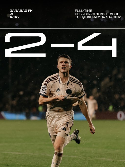 Απίθανη απόδραση με ανατροπή από το Μπακού για τον Άγιαξ, ο οποίος πέρασε με 4-2 από την έδρα της Γκαραμπάγ και πήρε τους πρώτους του πόντους. Στους 7 πόντους έμειναν οι Αζέροι.