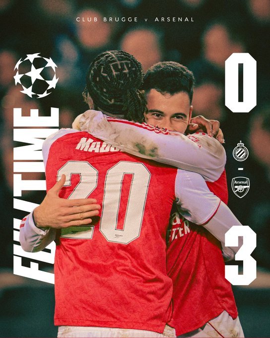 Το τρένο της Άρσεναλ πέρασε και από το Μπριζ. Οι «κανονιέρηδες» κέρδισαν με 3-0 την ομάδα του Χρήστου Τζόλη, έφτασαν στους 18 πόντους και κλειδώνουν την οκτάδα. Μόλις τέσσερις πόντους οι Βέλγοι.