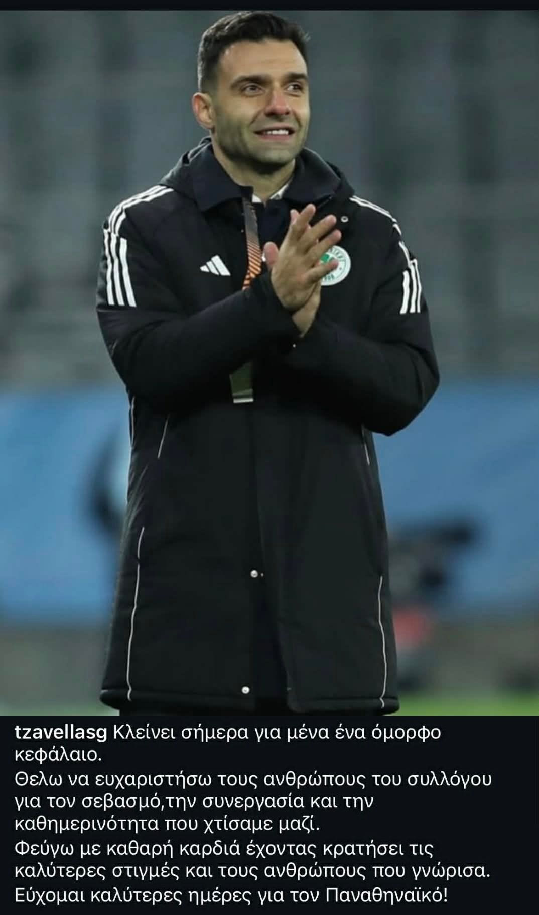 Σε ανάρτησή του, ο παλαίμαχος άσος σημειώνει τα εξής: "Κλείνει σήμερα για μένα ένα όμορφο κεφάλαιο. Θέλω να ευχαριστήσω τους ανθρώπους του συλλόγου για τον σεβασμό, τη συνεργασία και την καθημερινότητα που χτίσαμε μαζί.