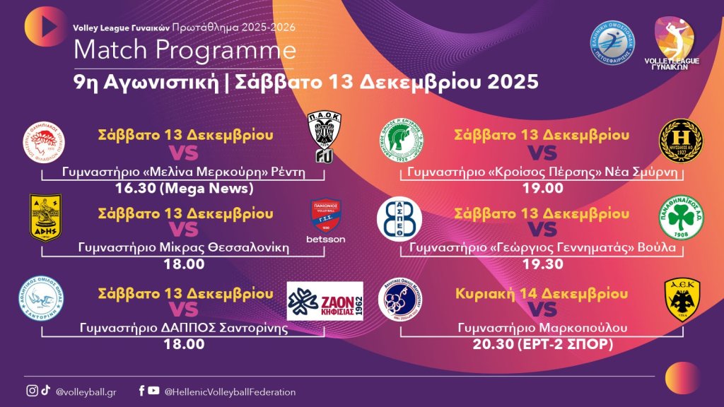 Volley League Γυναικών - 9η αγωνιστική