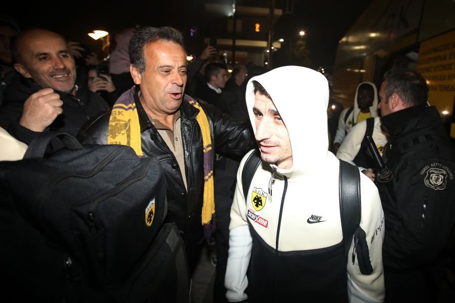 Τρέλα για την ΑΕΚάρα στο Αγρίνιο. Εκεί όπου την περίμενε ένα… θερμό καλωσόρισμα από εκατοντάδες Ενωσίτες που περίμεναν για να αποθεώσουν τον Μάρκο Νίκολιτς και τους ποδοσφαιριστές. Οι Ενωσίτες έκαναν τη νύχτα-μέρα με δεκάδες καπνογόνα ζήτησαν από την ομάδα τη νίκη στην κυριακάτικη αναμέτρηση με τον Παναιτωλικό, πρωτάθλημα-κύπελλο, και… ντόπαραν τους παίκτες με συνθήματα. Τρομερή αποθέωση για Νίκολιτς και για τον Ορμπελίν Πινέδα ο οποίος μόλις εμφανίστηκε επικράτησε... πανικός!