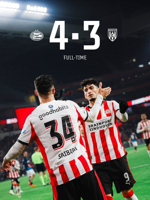Η Αϊντχόφεν τα… χρειάστηκε κόντρα στη Χέρακλες αλλά στο φινάλε κέρδισε με 4-3 σε ένα φοβερό ματς, έφτασε τις 10 σερί νίκες και καλπάζει για τον τίτλο.