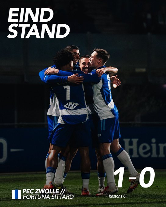Η Τσβόλε επικράτησε 1-ο της Φορτούνα Σιτάρντ, επέστρεψε στα τρίποντα και προσπέρασε τη σημερινή της αντίπαλο στη βαθμολογία. Το μοναδικό τέρμα της αναμέτρησης σημειώθηκε στο 6ο λεπτό από τον Κόστονς.